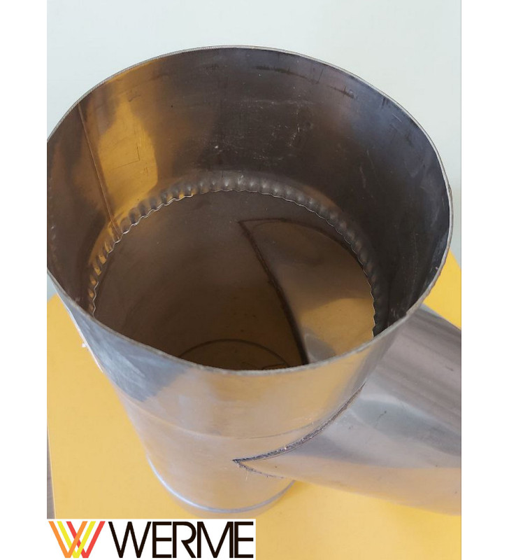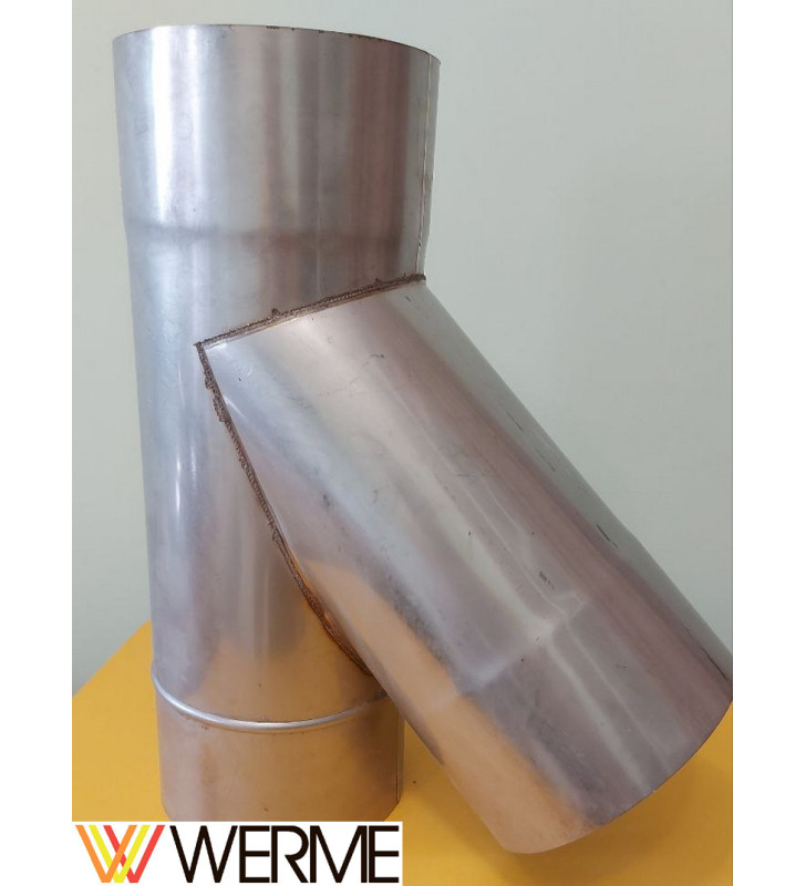 Тройник 45° (толщина стали 0,5 мм) соединяет горизонтальные вертикальные участки дымоходной системы.