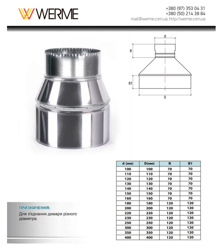 Переход служит для соединения элементов дымоотводной системы разных диаметров.