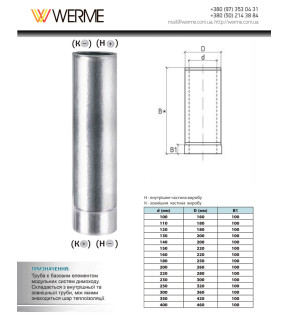 Толщина внутренней стенки 0,8 мм, кожух теплоизоляции выполнен из оцинкованной стали.
