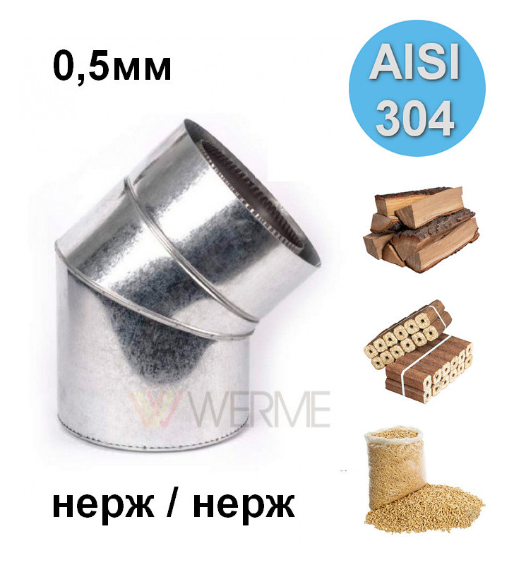 Колено 45* позволяет изменять направление дымоотводной системы на угол 45 град. Устанавливается как на горизонтальных, так и на вертикальных участках.