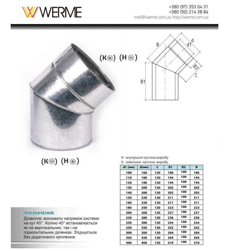 Колено 45* позволяет изменять направление дымоотводной системы на угол 45 град. Устанавливается как на горизонтальных, так и на вертикальных участках.