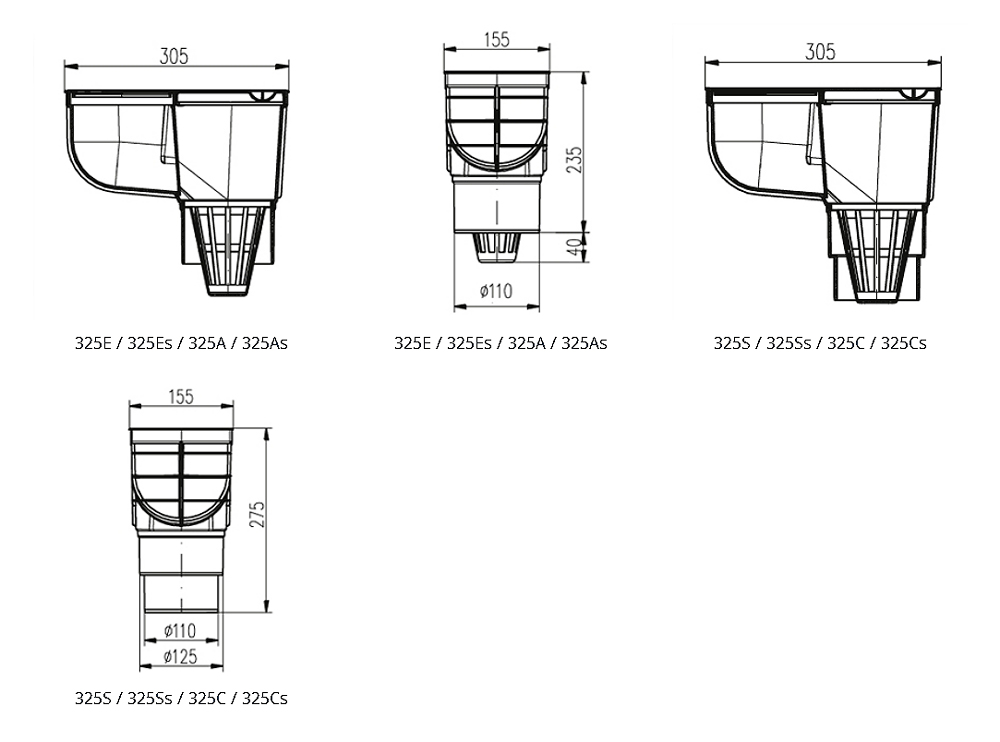 Дождеприемник пластиковый MCH 325 Es, вертикальное подключение D110 - стандарт, серый